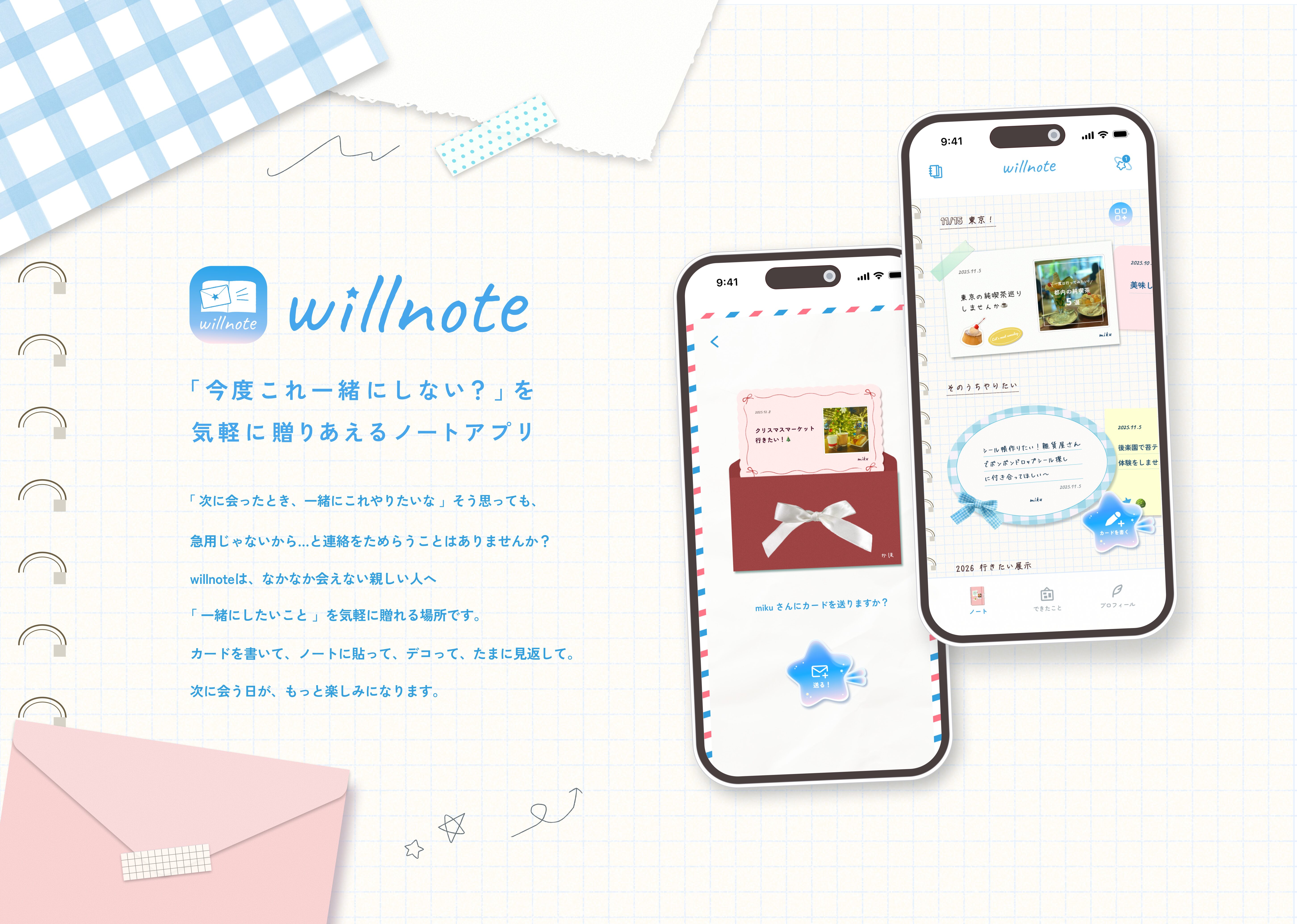 willnoteは、そんな送りづらいささいな気持ちを、気軽に届けるためのアプリです。