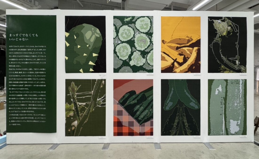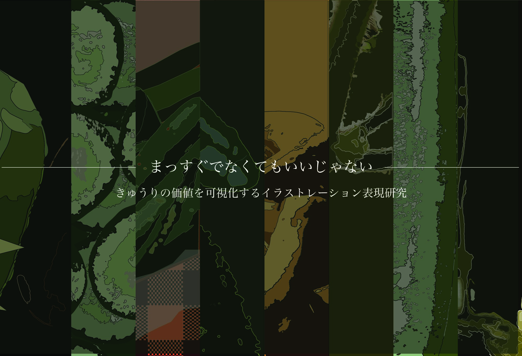 市場に出ることのなかったきゅうりをモチーフに、色や形の観察から見えてきたその形の面白さに価値を与えデザインします。イラストレーションを通してきゅうりの新たな見方を増やし、まっすぐでなければならないということからまっすぐでなくても魅力のある野菜なのだと伝えたいと思いこの作品を制作しました。