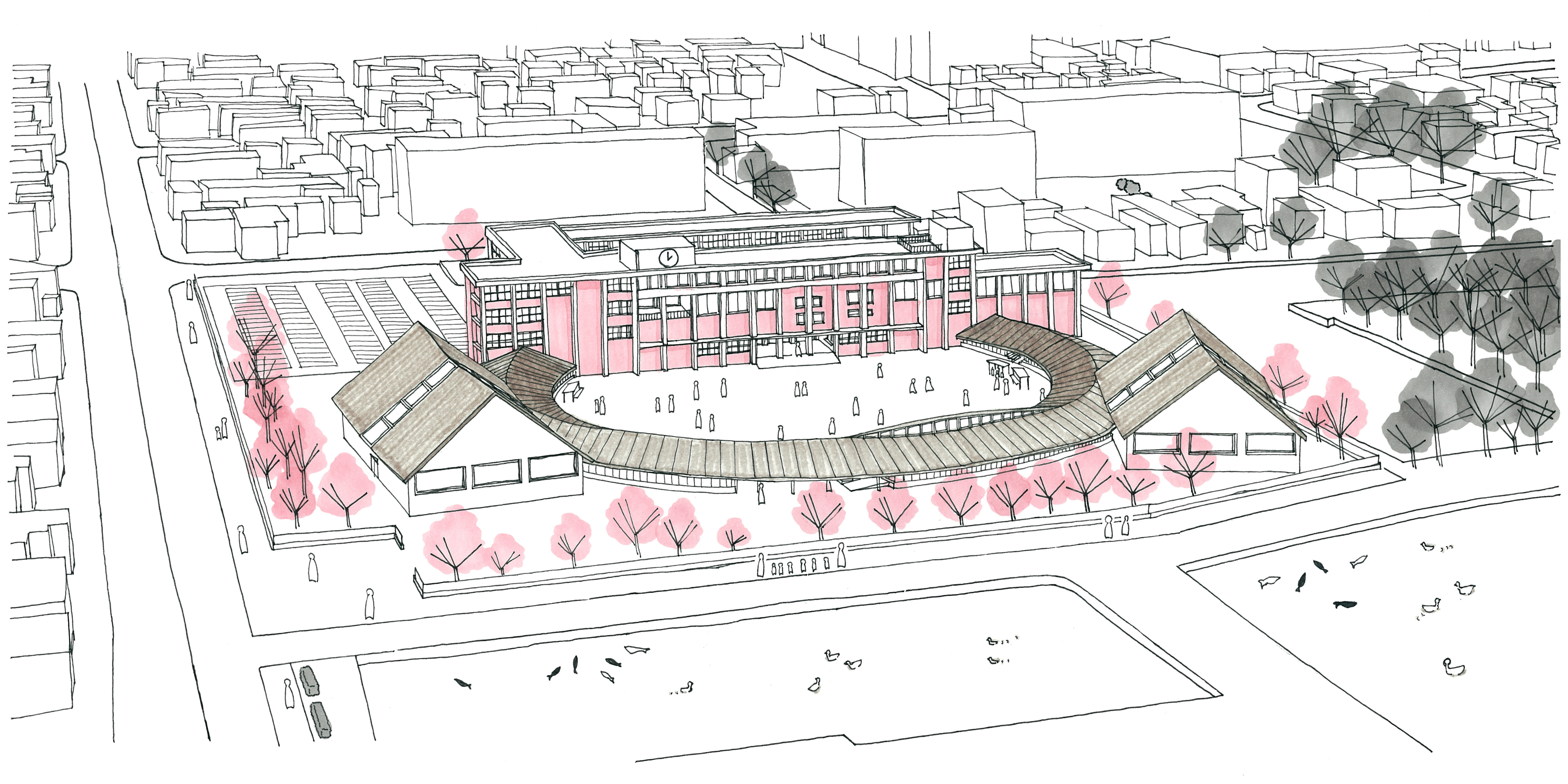 福島県会津若松市追手町に、校舎移転で取り残された学校があります。現在は市役所として使われていますが、利用されているのも校舎の一部分だけです。学校だった頃の姿を残しながら地域から取り残されているこの建物を、置き畳を使うことを主軸としたリノベーションで再び愛されるような姿に変える研究です。