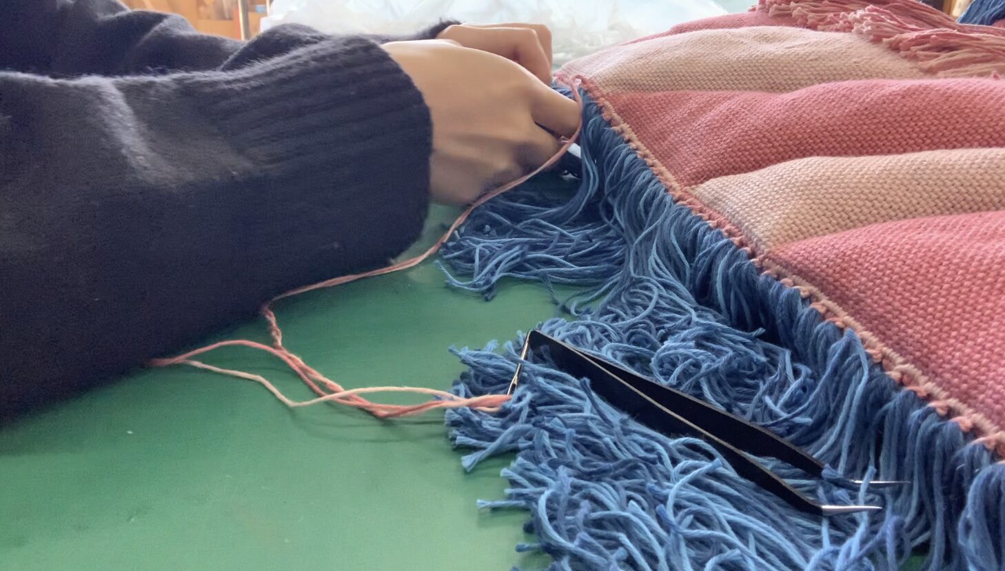 - 織り作業中