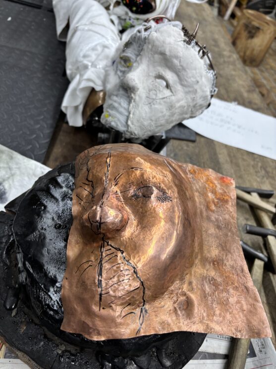 顔制作過程 頭蓋骨 顔の鍛金パーツ 角付け後