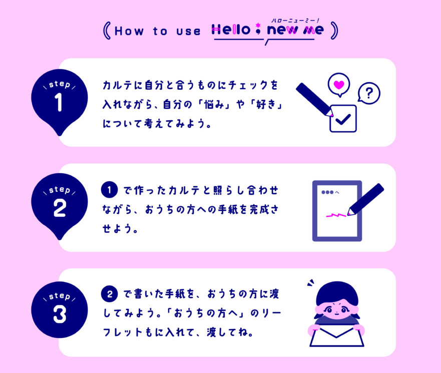 「Hello ; new me」があることで、おうちの人に悩みを共有し、自分らしく生活できる。