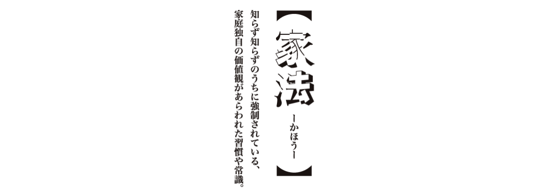 家庭のヘンな習慣や常識と、それにまつわるエピソードを一覧できるようにしたもの。