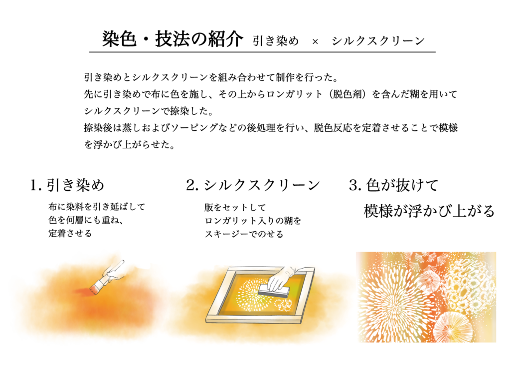 模様のリピートと、同質の線が一点から反復的に増えていく構成としました。