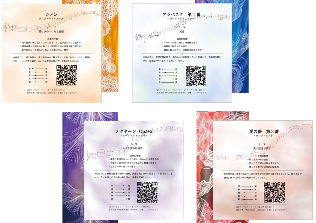 ▲ 一番左から順に、カノン、アラベスク、ノクターン、愛の夢