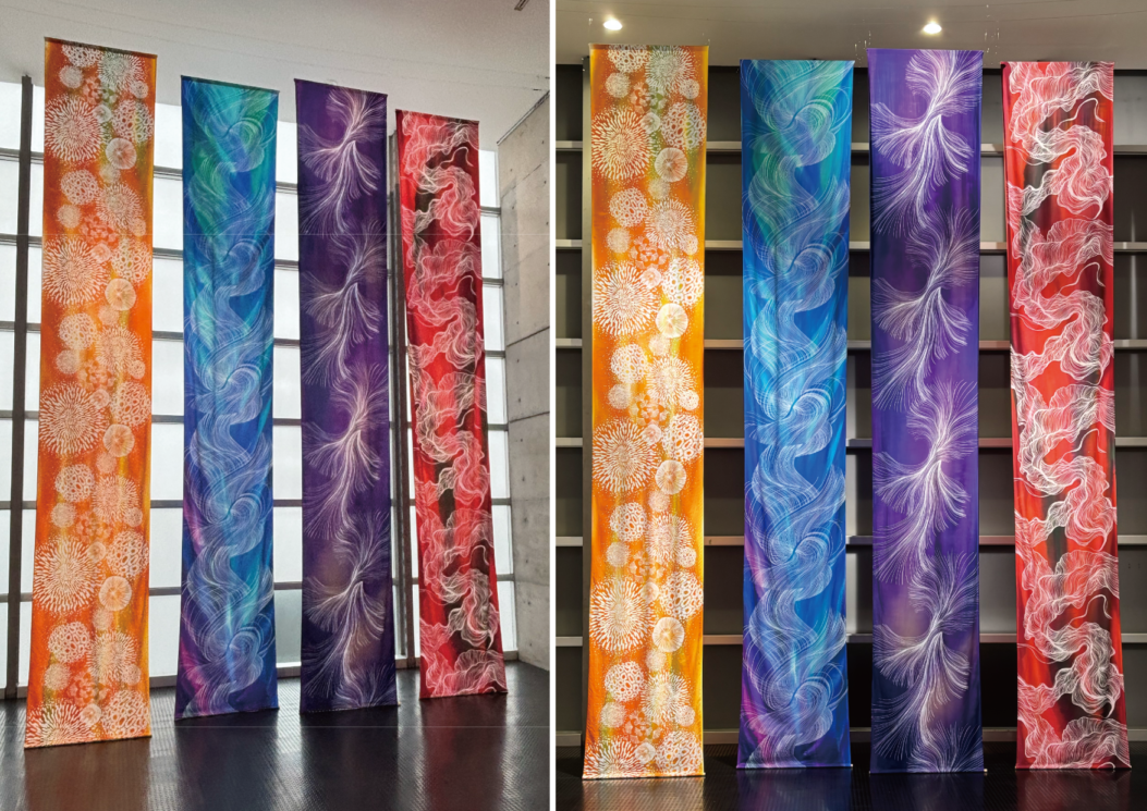 時間の中で流れ、揺らぎ、重なりながら展開する要素です。