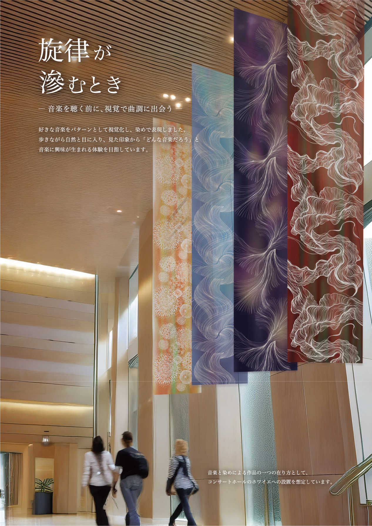 演奏会開演前に来場者が過ごすコンサートホールのホワイエを展示空間と想定し、