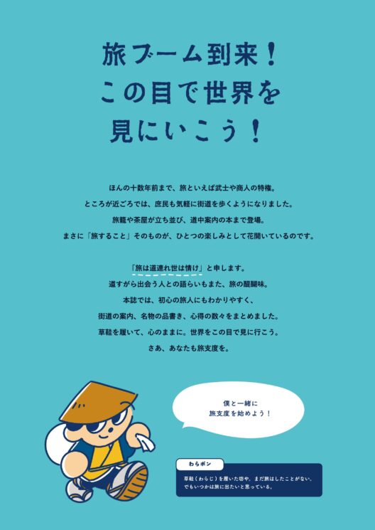 『草鞋日和』は、そんなスマホもインターネットもない時代の 迷える江戸時代の旅人たちに向けて、ビギナー向けの旅行雑誌を発行するなら…? という発想から生まれました。