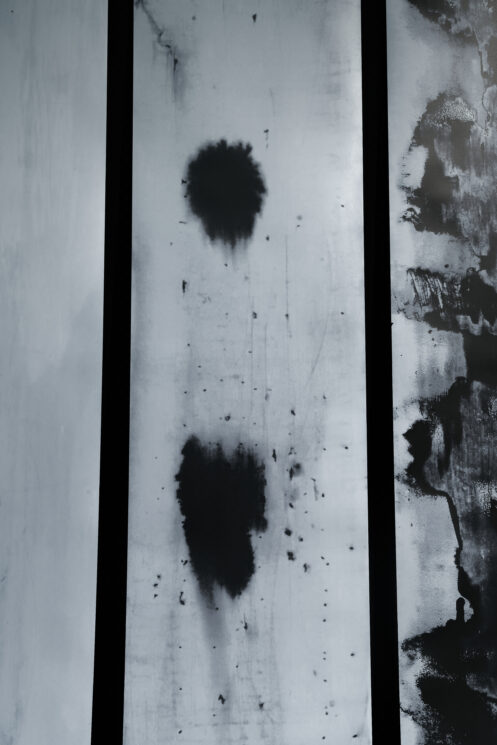 グラフィックは具体的な形や線を用いず、濃淡の分布のみで構成している。