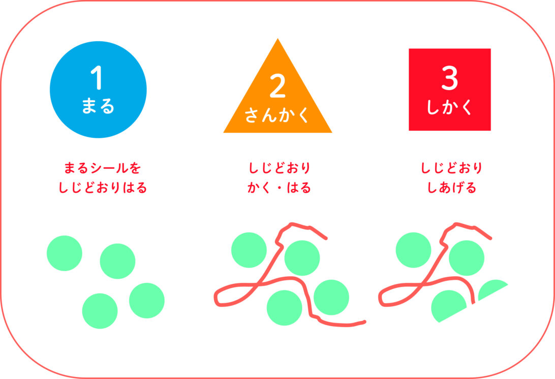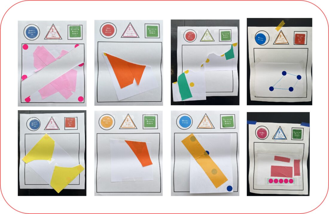 参加者には「まる・さんかく・しかく」の順でカードを引いてもらい、下のようなシートにワークを行ってもらう。