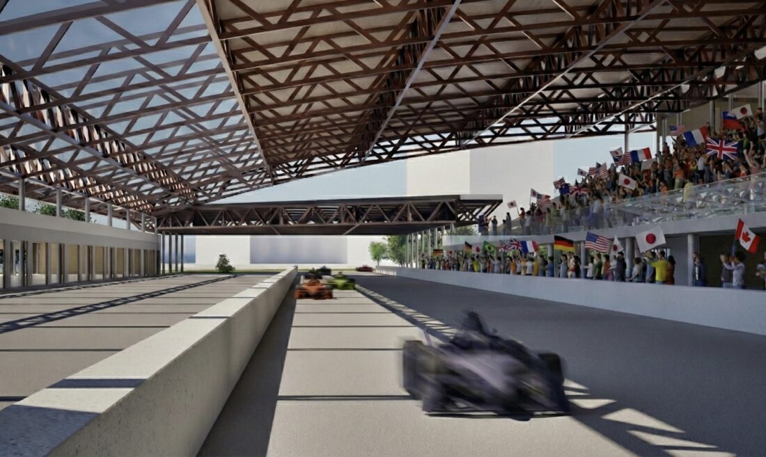 サーキットはいくつかの要因で「閉じた施設」として、都市生活から隔離され、その孤立感が建築としての機会を損失させている。しかし、近年の脱炭素化の動きが、排出ガスの低減、静粛性に優れる「FORMULA E」という電動車レースを生み出した。このレースは都市の環境問題に適合し、サーキットを再びまちへと呼び戻す可能性を切り拓いた。しかし、開催地一帯は都市組織から切り離された「空白地帯」となり、まちの分断を招いている。空白地帯の再構築には、新たな動線として臨海地下鉄構想を用いて、まちの動線を抜本的に開放させ、サーキット建築をこの場所の個性を確率するプログラムとして介入させる。駅と多目的大空間による繋ぎの拠点を創出し、有明南地区全体の活性化を図る。