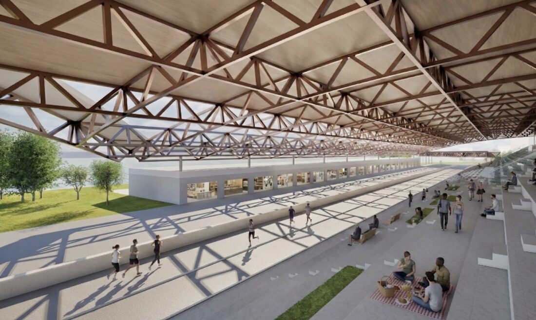 イベントのない日常において、この建築は地域住民に開かれた水辺の憩いの場となる。ジョギングやピクニックを楽しむ「親水公園」へと変わる。