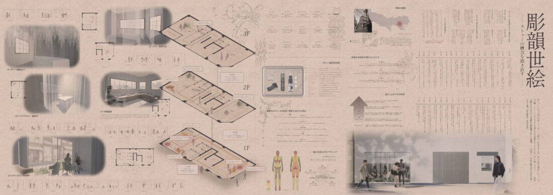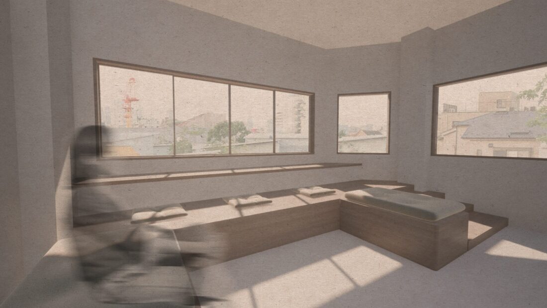 ここでは、入口―対話―施術へと関わりの段階に合わせて空間を組み立て、素材・光・音も印象を和らげる条件として整理した。社会の中で形成されてきたタトゥーへの見方と向き合う、新たな関わり方と空間の枠組みを提示する。