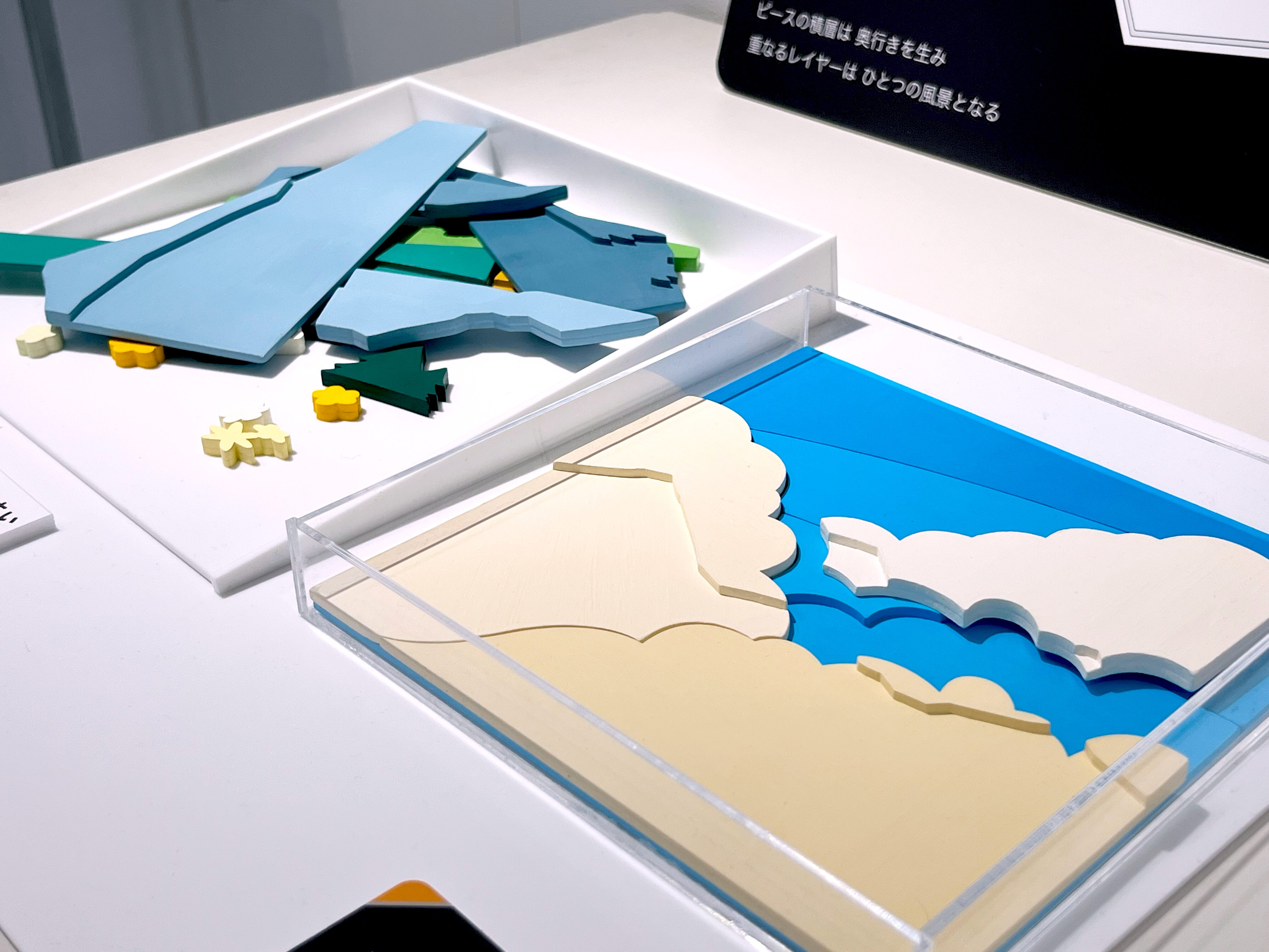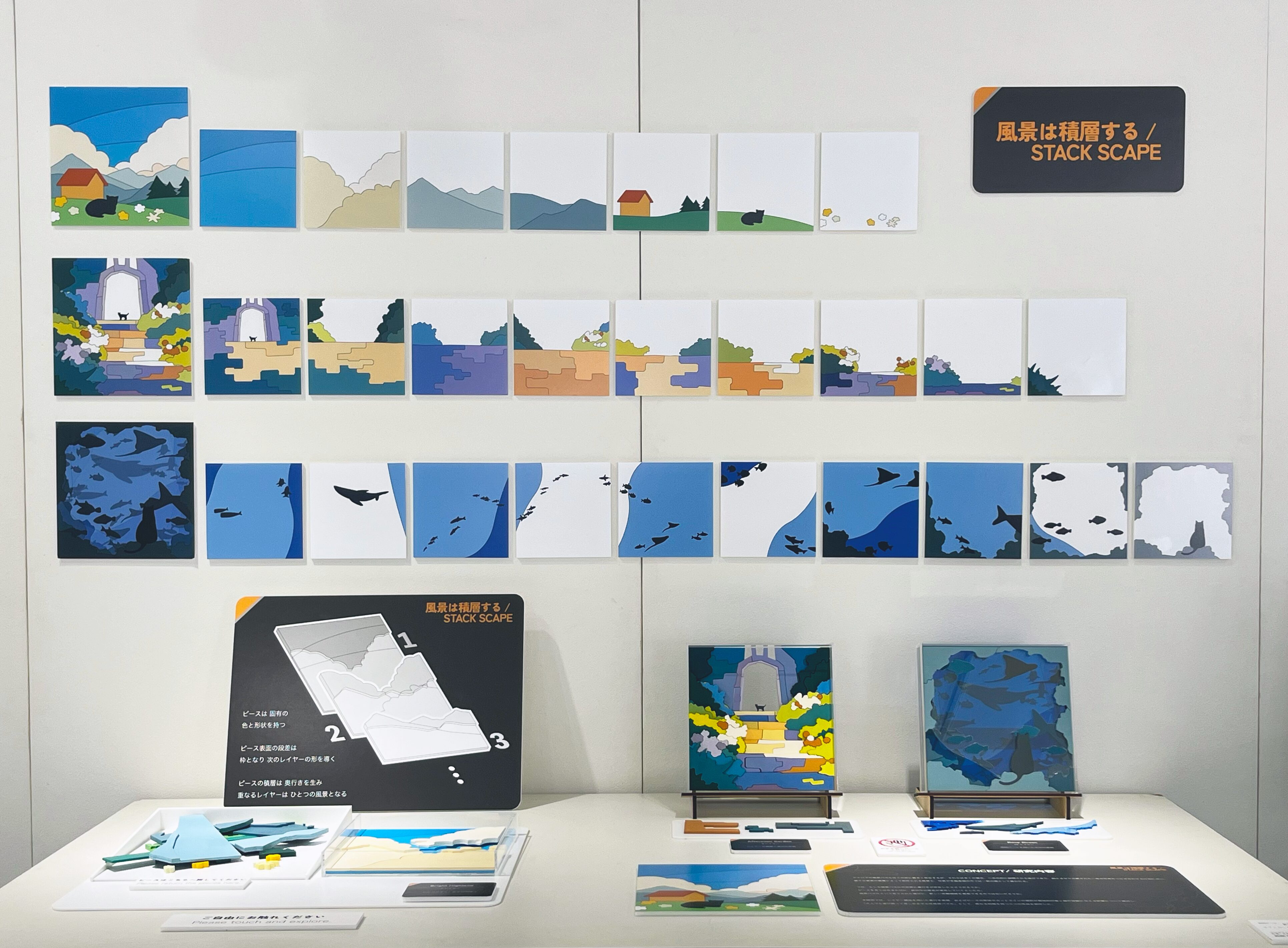 「大人でも遊び飾って楽しめる半立体風景パズル」として、異なる特徴を持つ三つの作品を制作した。
