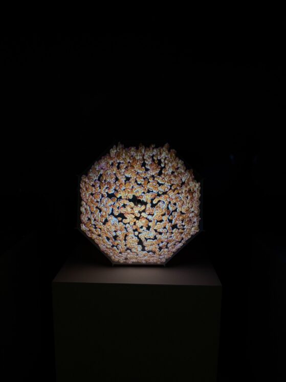 しかし、映像という表現を通して無機物に、光や動き、周期的な変化、わずかな揺らぎを与えることで、鑑賞者自身の記憶や感情が重なり合い、それぞれ異なる「生命の気配」が立ち上がる。