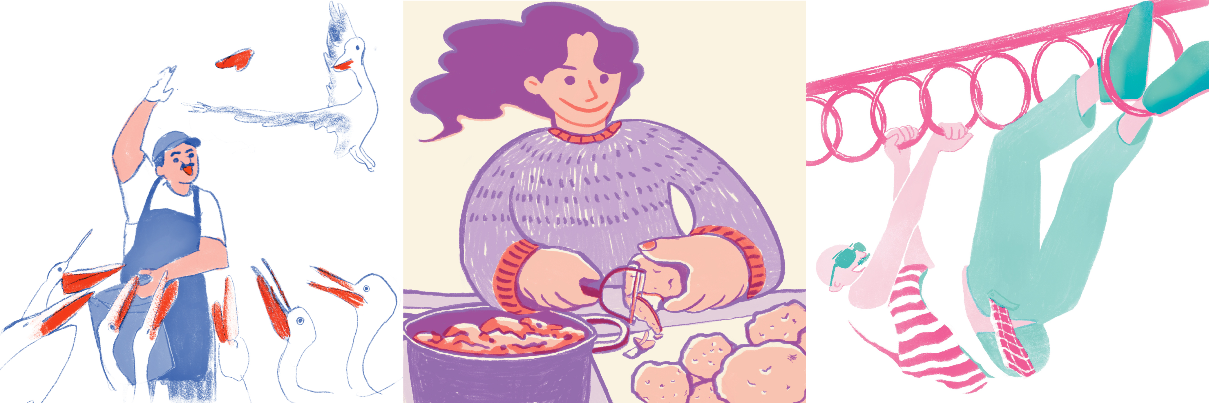 現地では、実際に滞在しなければ気がつかなかったような魅力がたくさんありました。今回はそうした「実際に滞在して印象に残ったことや魅力を感じたもの」を自分の視点でイラストレーションに落とし込みました。