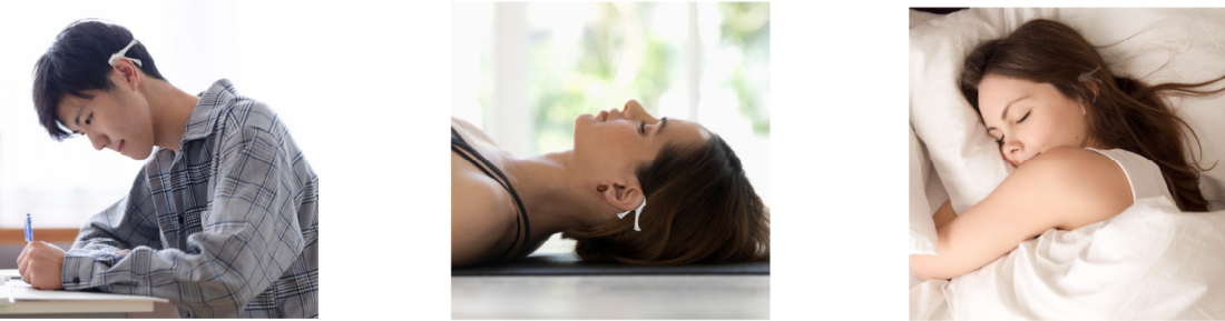 Neu-Fit は、使用者が望む心身の状態へ自然に近づくことをサポートする耳掛け型ニューロデバイスである。