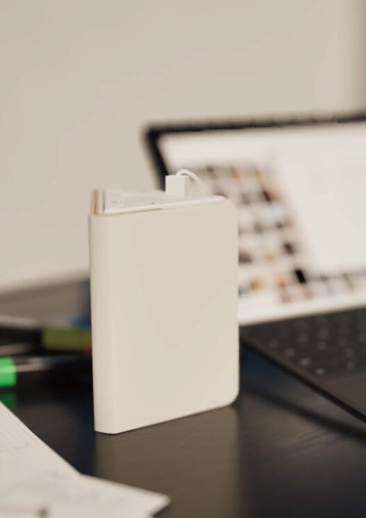 メディアの利用媒体がテレビからモバイル端末に変わり、1人一台は当たり前になっています。それに加え、生活の中では様々な電化製品を使用するのでコンセントが足りなくなるという問題があります。そこから、屋外でモバイル端末を使用するために作られてきたポータブルバッテリーは、室内でも需要があるのではないかと考え、デザインいたしました。