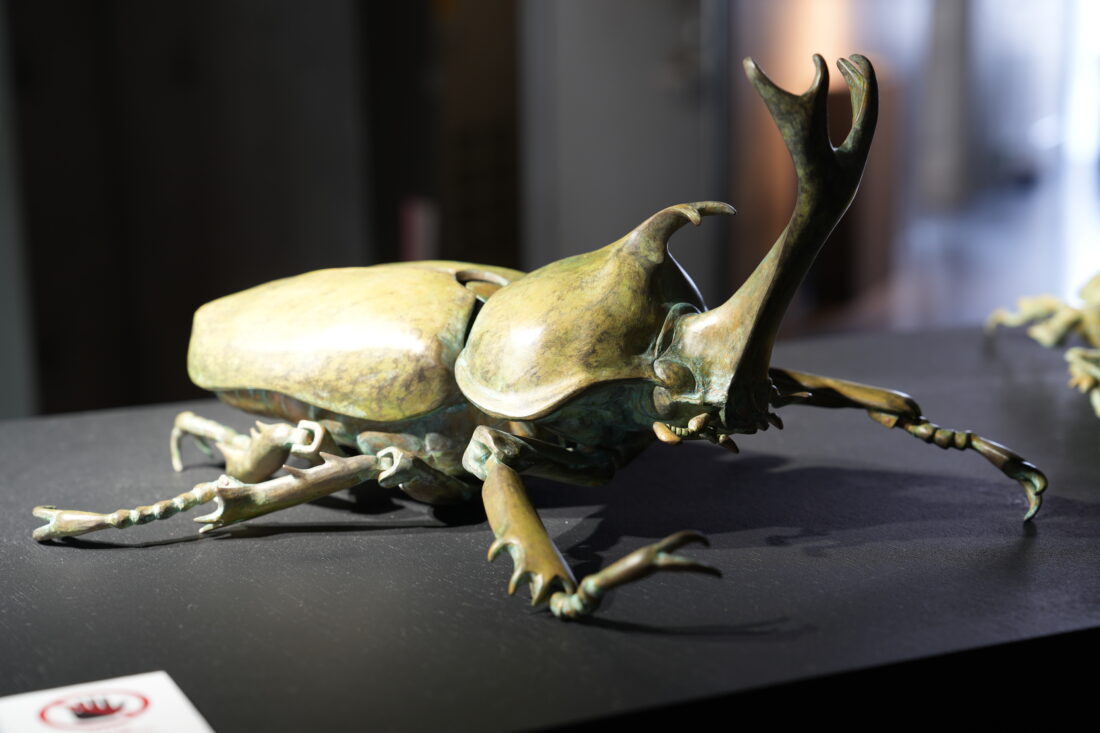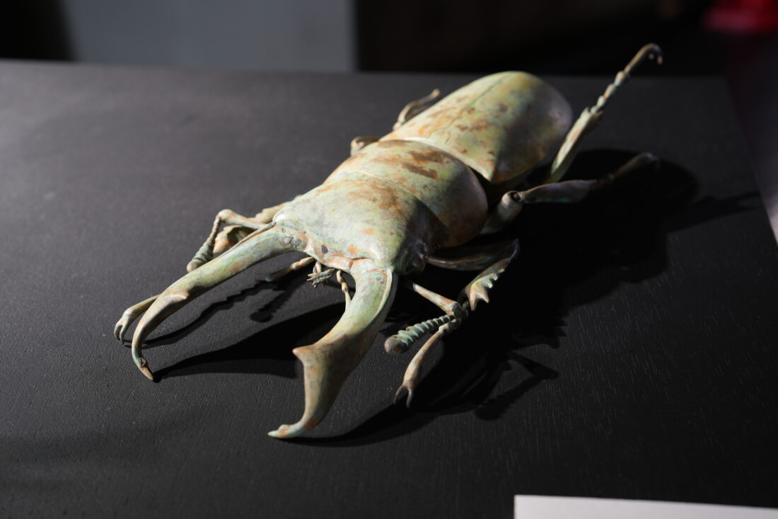 自在置物とは、金属で動物や昆虫を写実的に作り、しかもそれが本来持っている関節や体などを動かすことのできる機能まで、実際に動かせるようにした置物。
