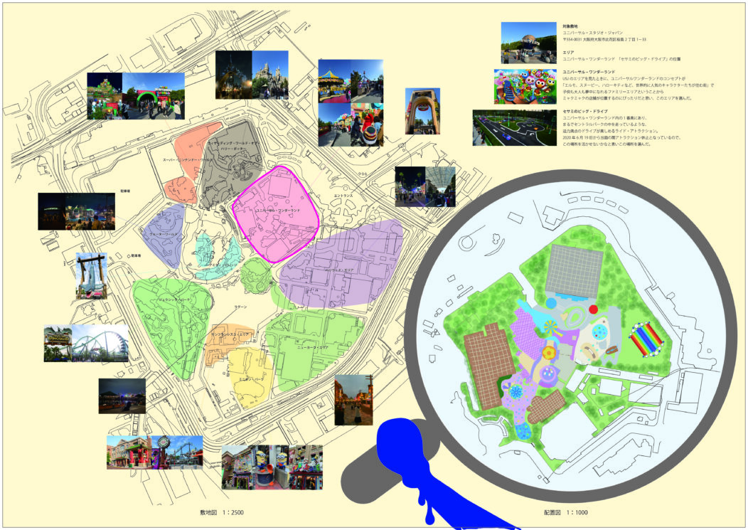 2025大阪・関西万博で大人気になったミャクミャクと万博終了後も触れ合える場所があったらいいなと思い、立地的にも近く、様々なコンテンツを掛け合わせたテーマパークであるUSJにミャクミャクの店舗を設計することにしました。
