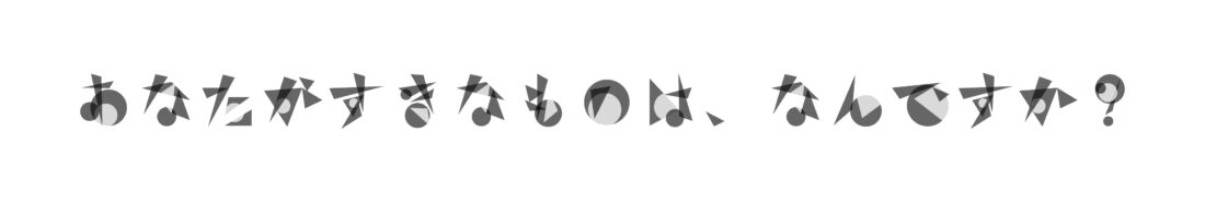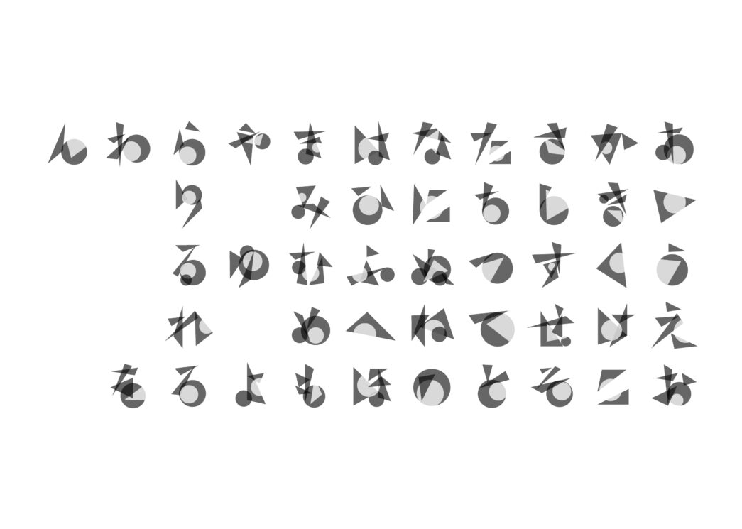 これはいくつか作られたひらがな五十音のうち最後に作られたものです。一見、何かわからない図形の集合が文字として認識できてしまうという表現を目指しました。