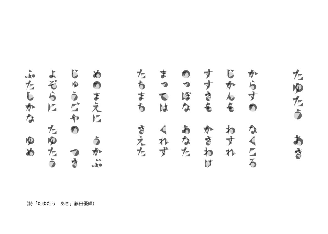 これらの制作研究では、文字の新しい表現を見つけることができ、更にはこの図形を用いた表現方法で別の文字やアートにも活かしていけるような可能性を見出すことができました。